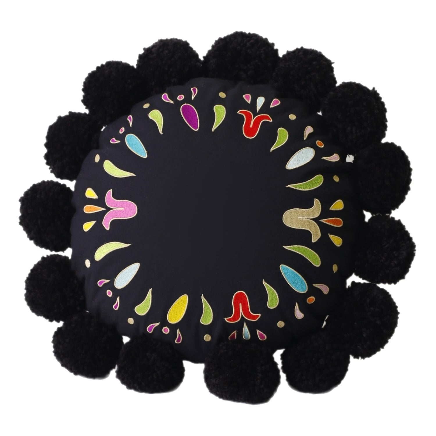 Beautiful machine embroidered cushion features multicoloured embroidery with gold details. A stunning addition to bring texture and colour to an accent chair or sofa.