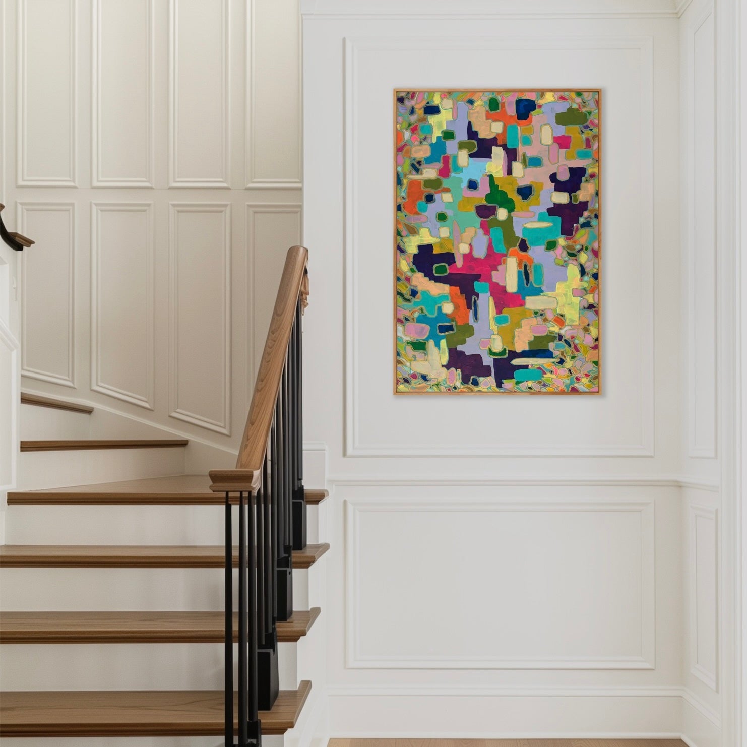 Experience the originality of Cubes, a colorful exploration of geometry. This playful painting captures small details for a unique and engaging aesthetic. Perfect for those looking for a one-of-a-kind addition to their art collection.