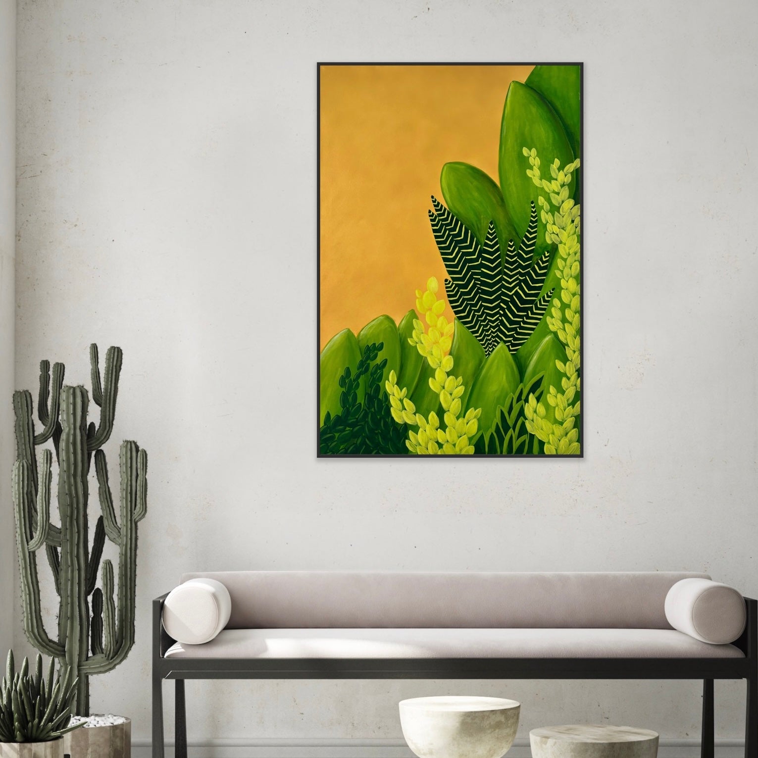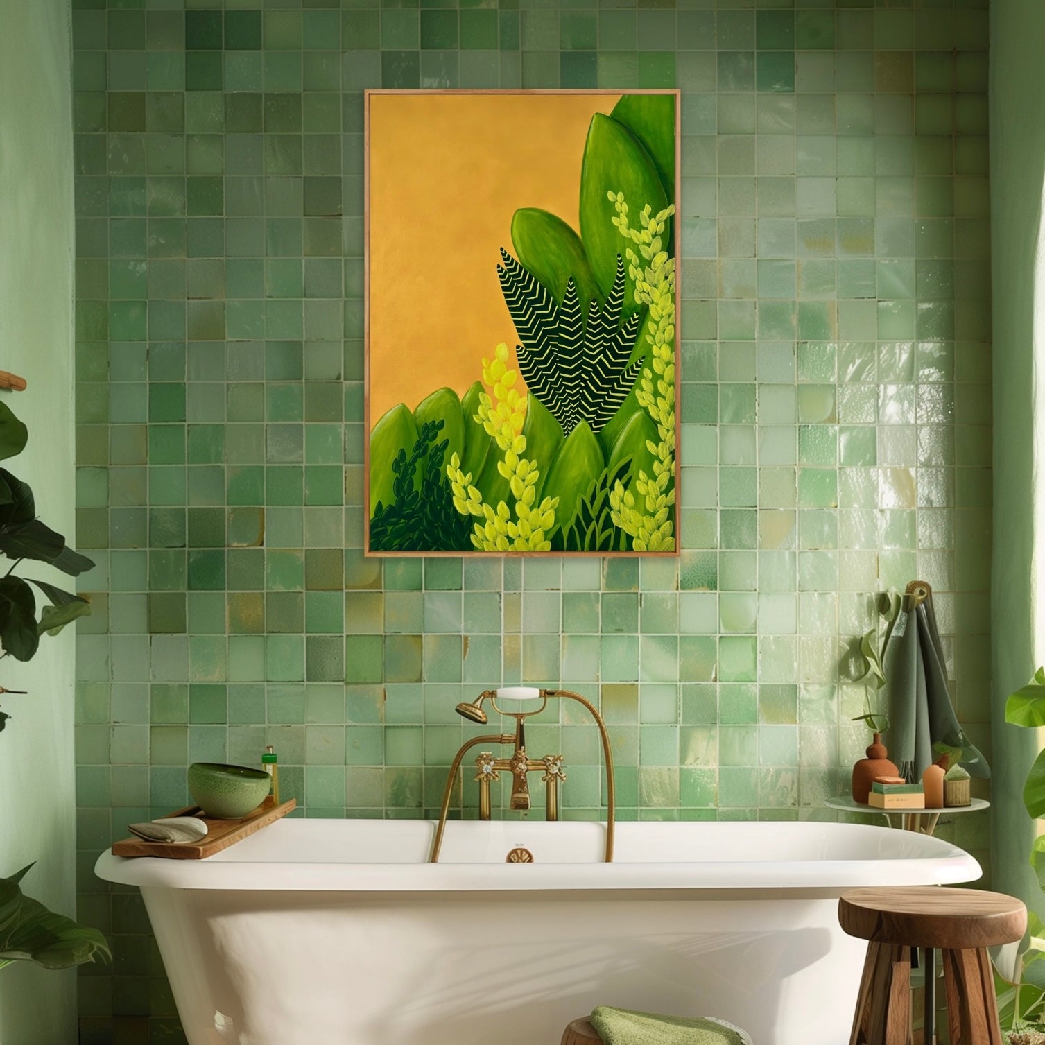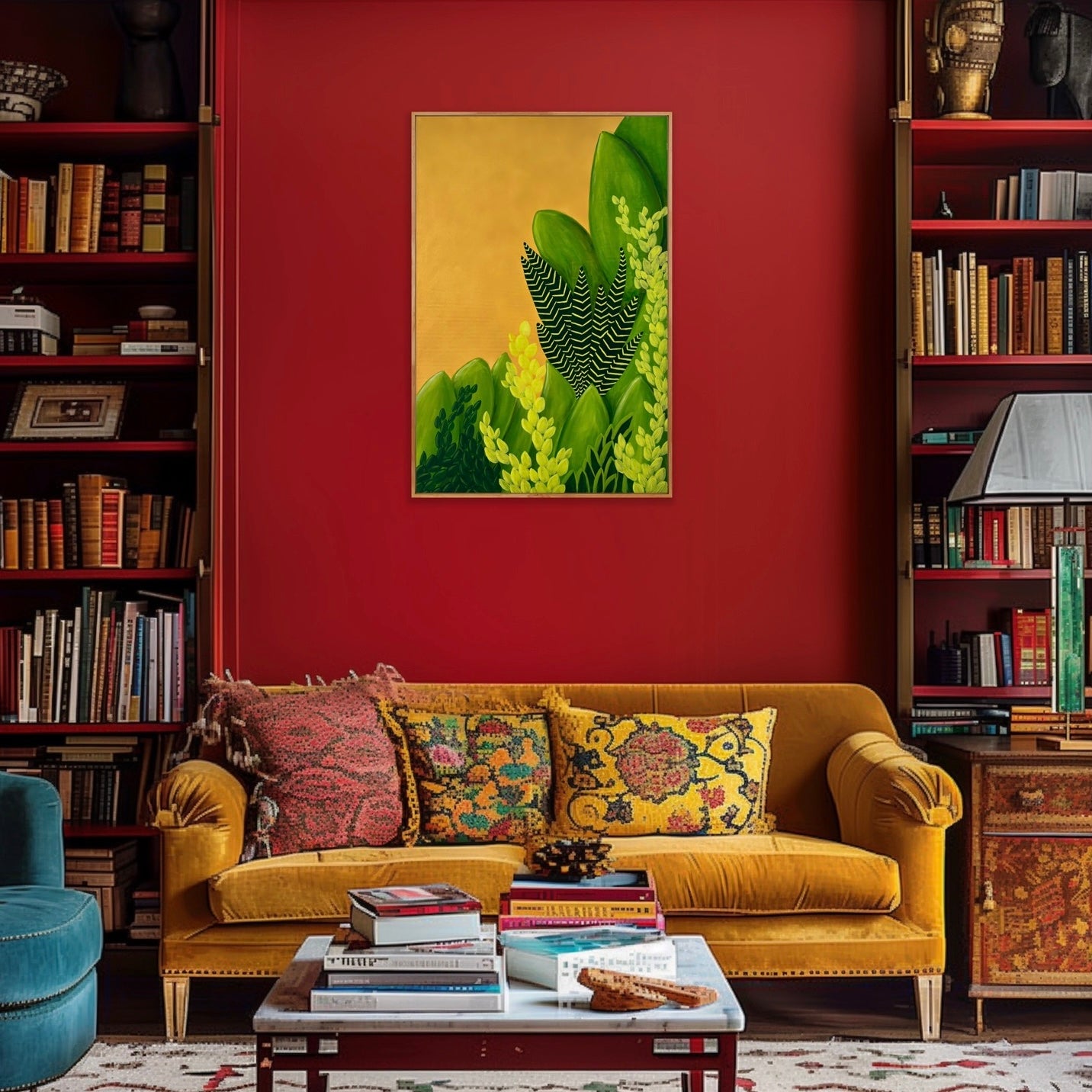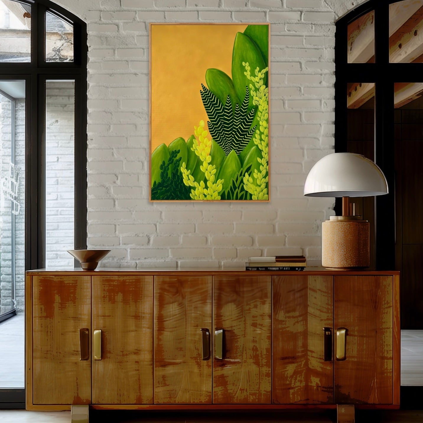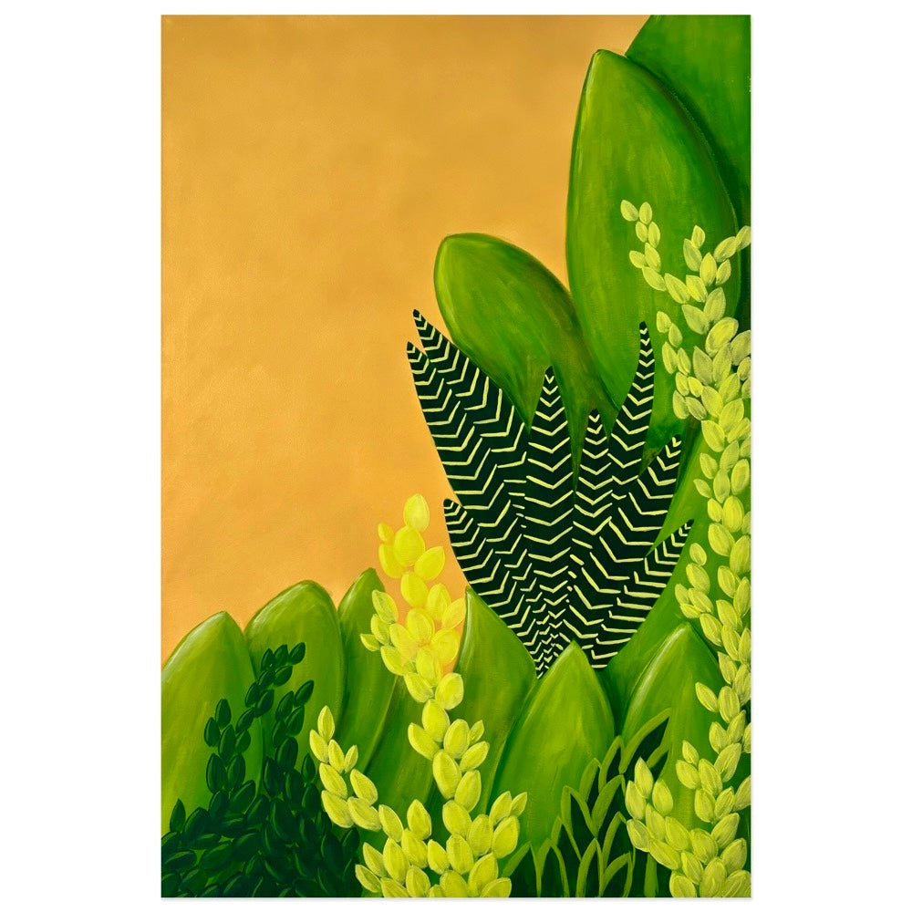 Experience the infusion of vibrant energy in your space with my Gold Leafs. Featuring an abstract painting of plants on a shimmering gold background, my painting is a perfect blend of art and energy. Elevate your surroundings and invite positivity with this unique piece.