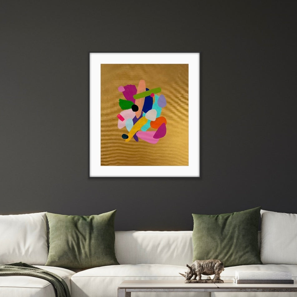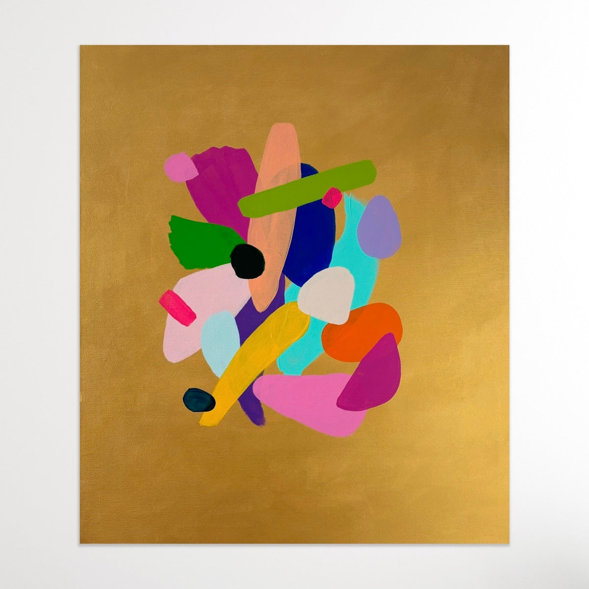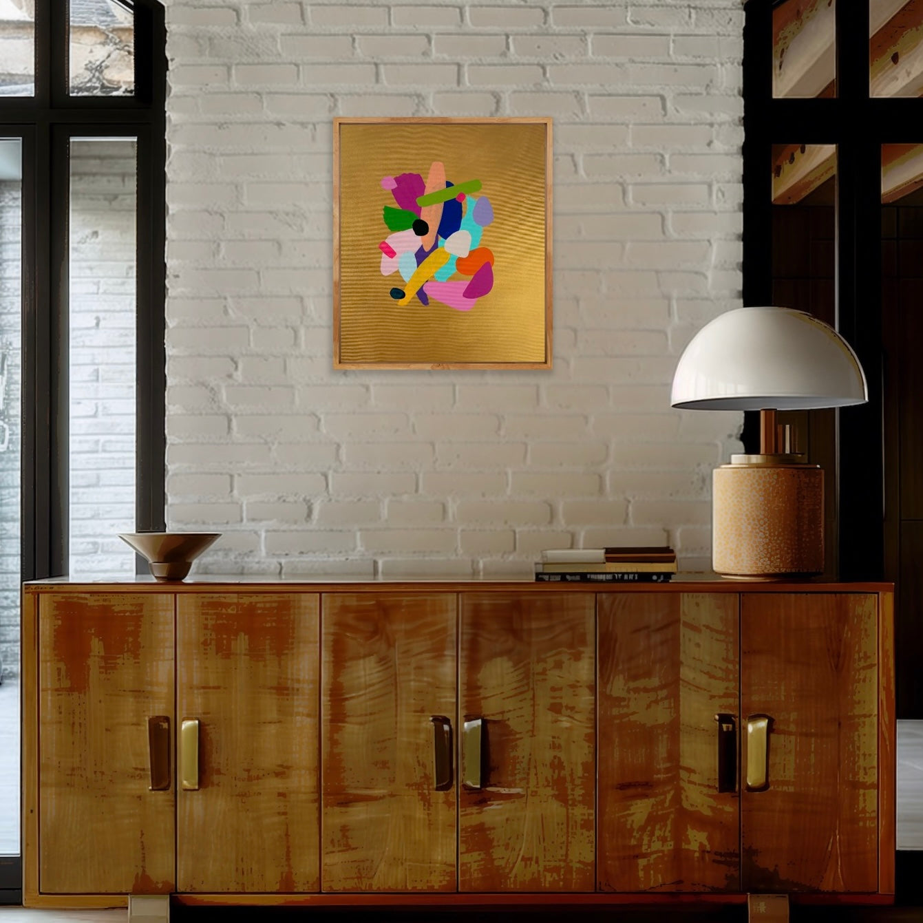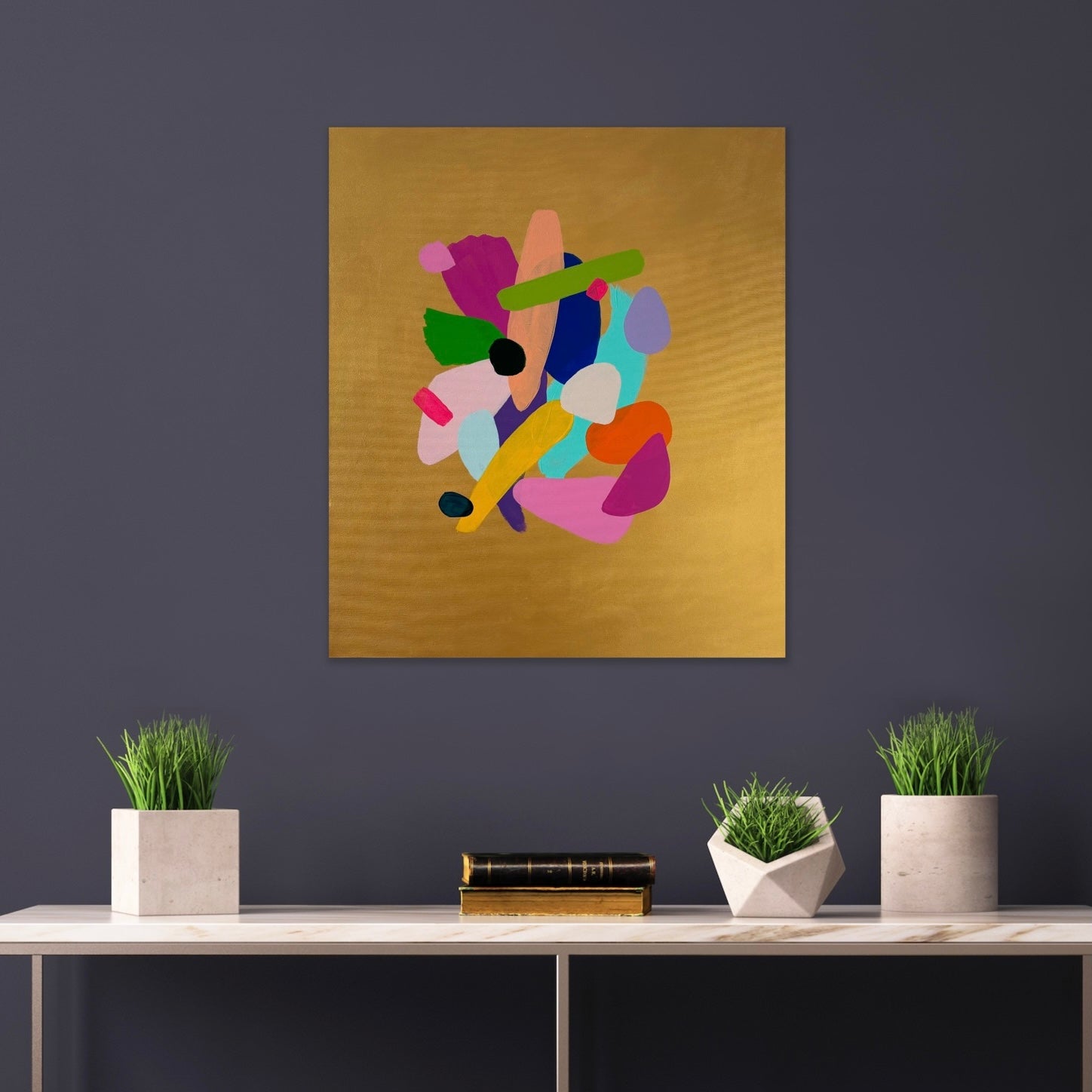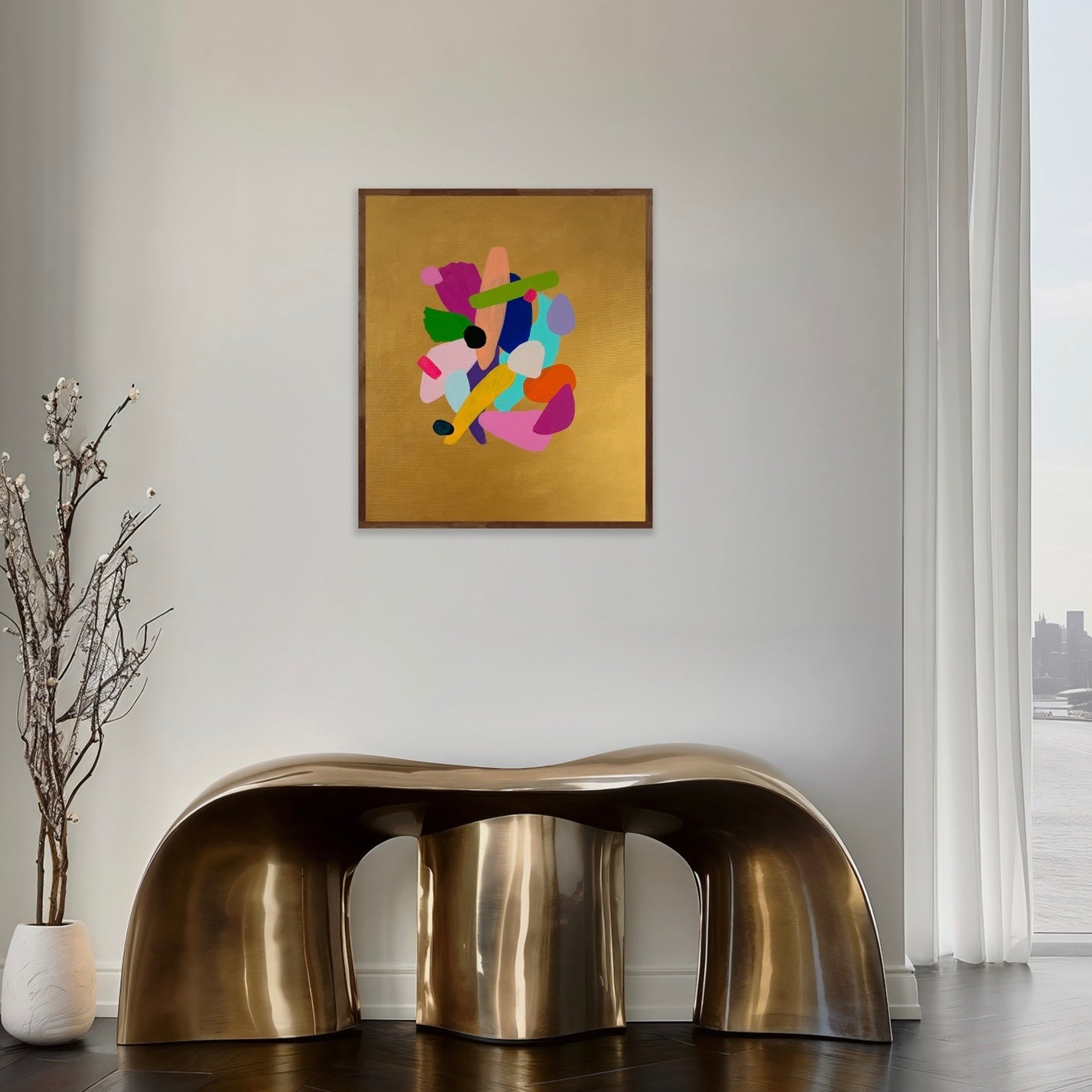 Golden Kids is an elegant addition to any space, featuring a minimalistic abstract painting on a stunning gold background. With the use of blended colors and shapes, this piece captures the beauty of a complete picture. Perfect for adding a touch of sophistication to any room.
