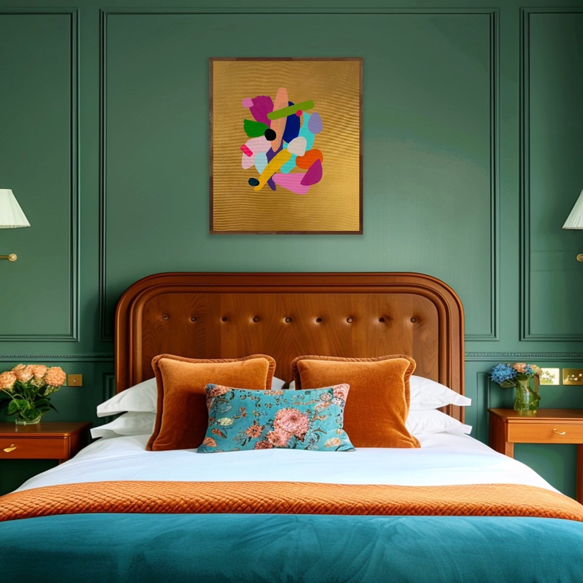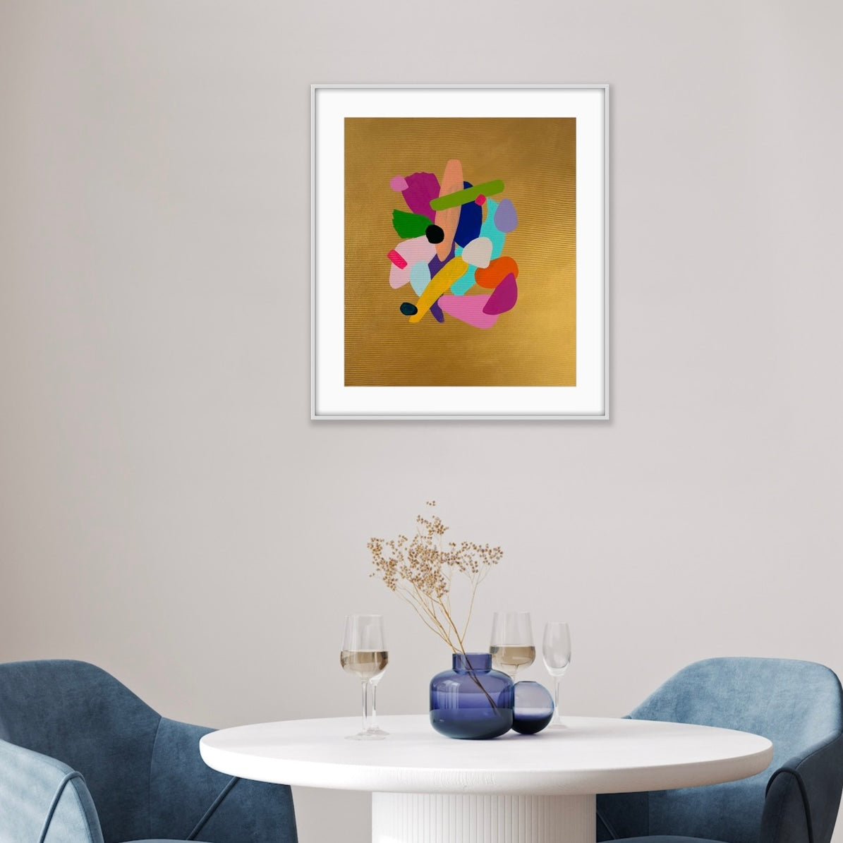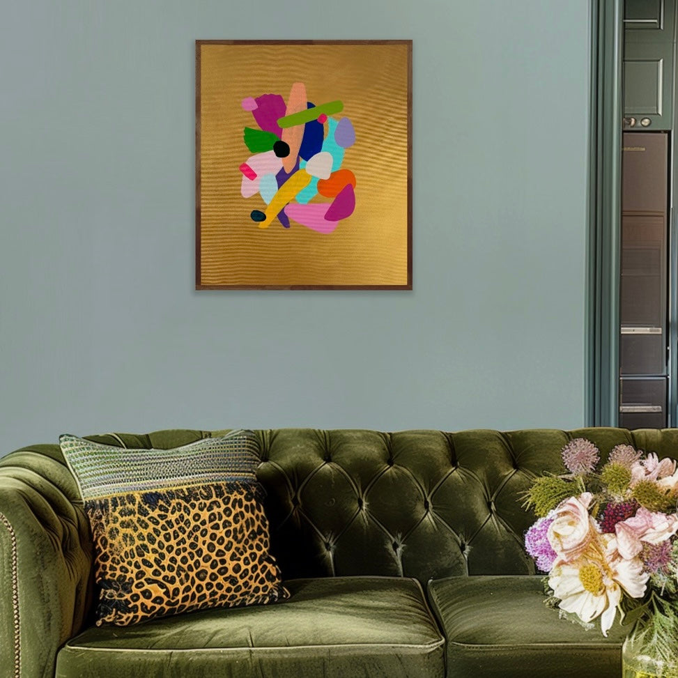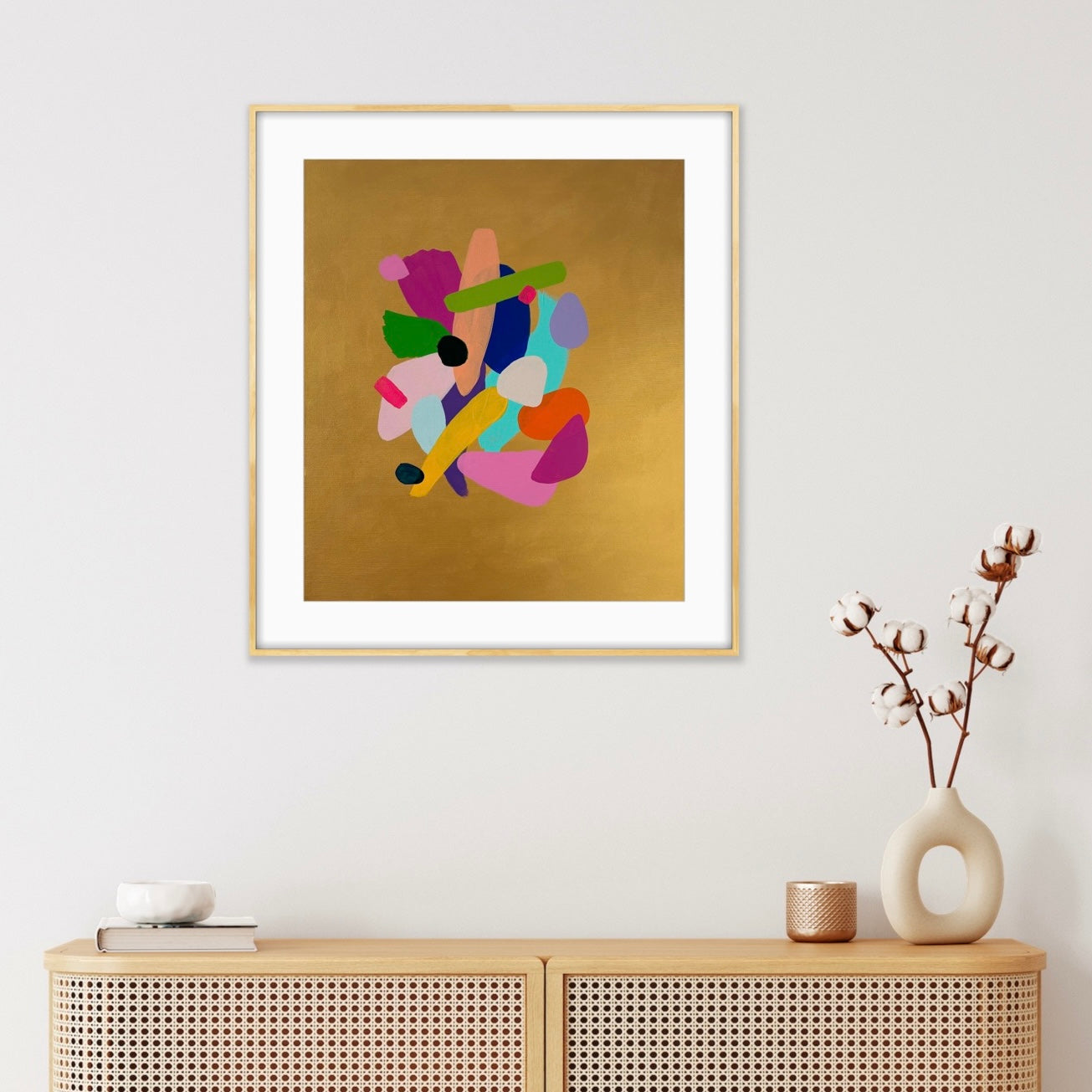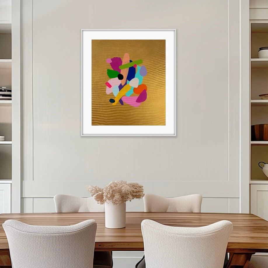 Golden Kids is an elegant addition to any space, featuring a minimalistic abstract painting on a stunning gold background. With the use of blended colors and shapes, this piece captures the beauty of a complete picture. Perfect for adding a touch of sophistication to any room.