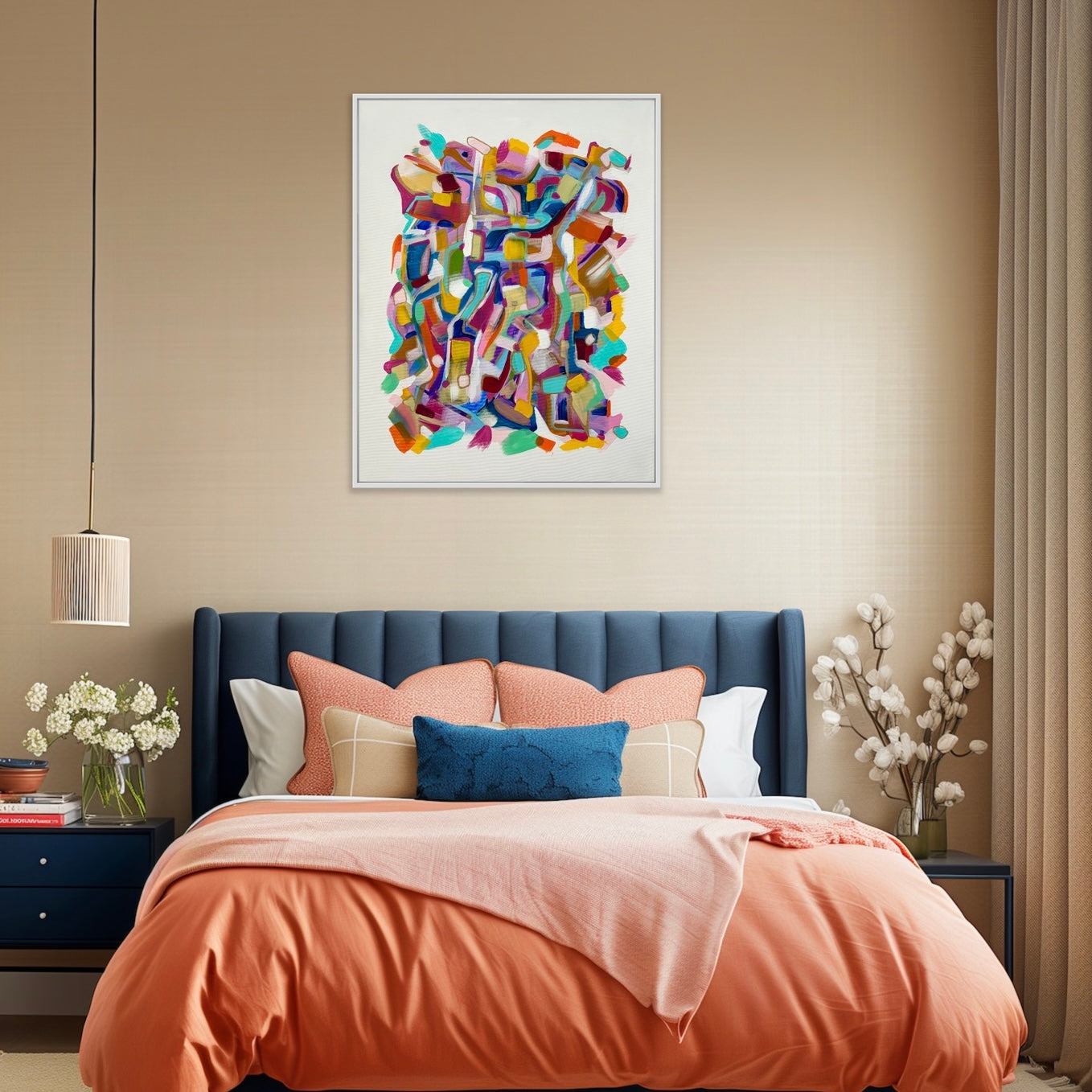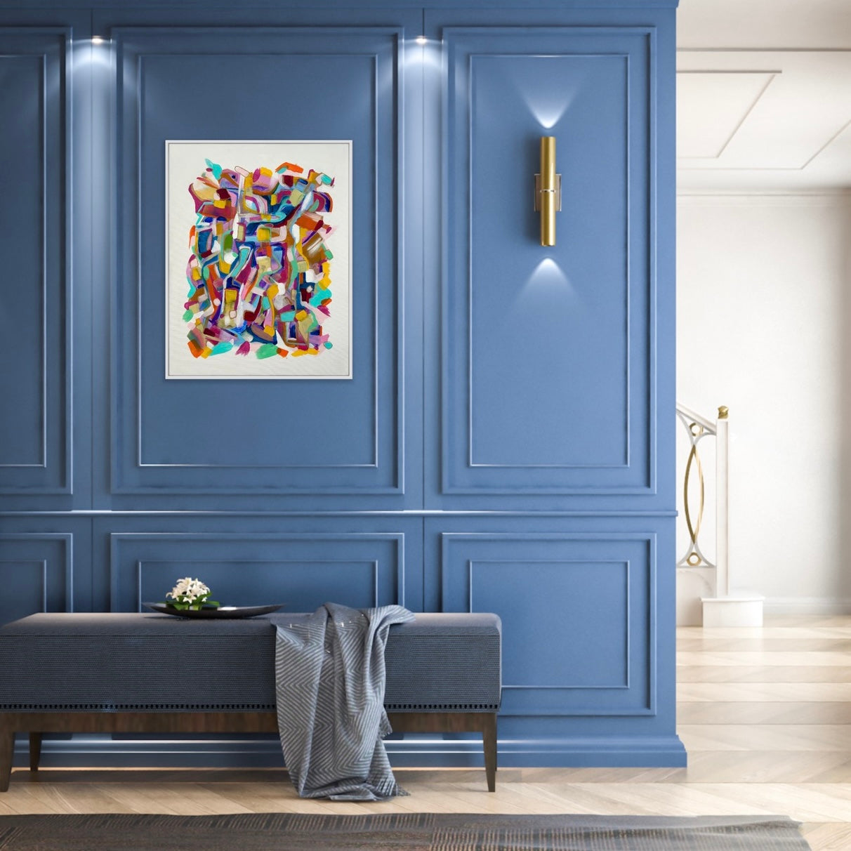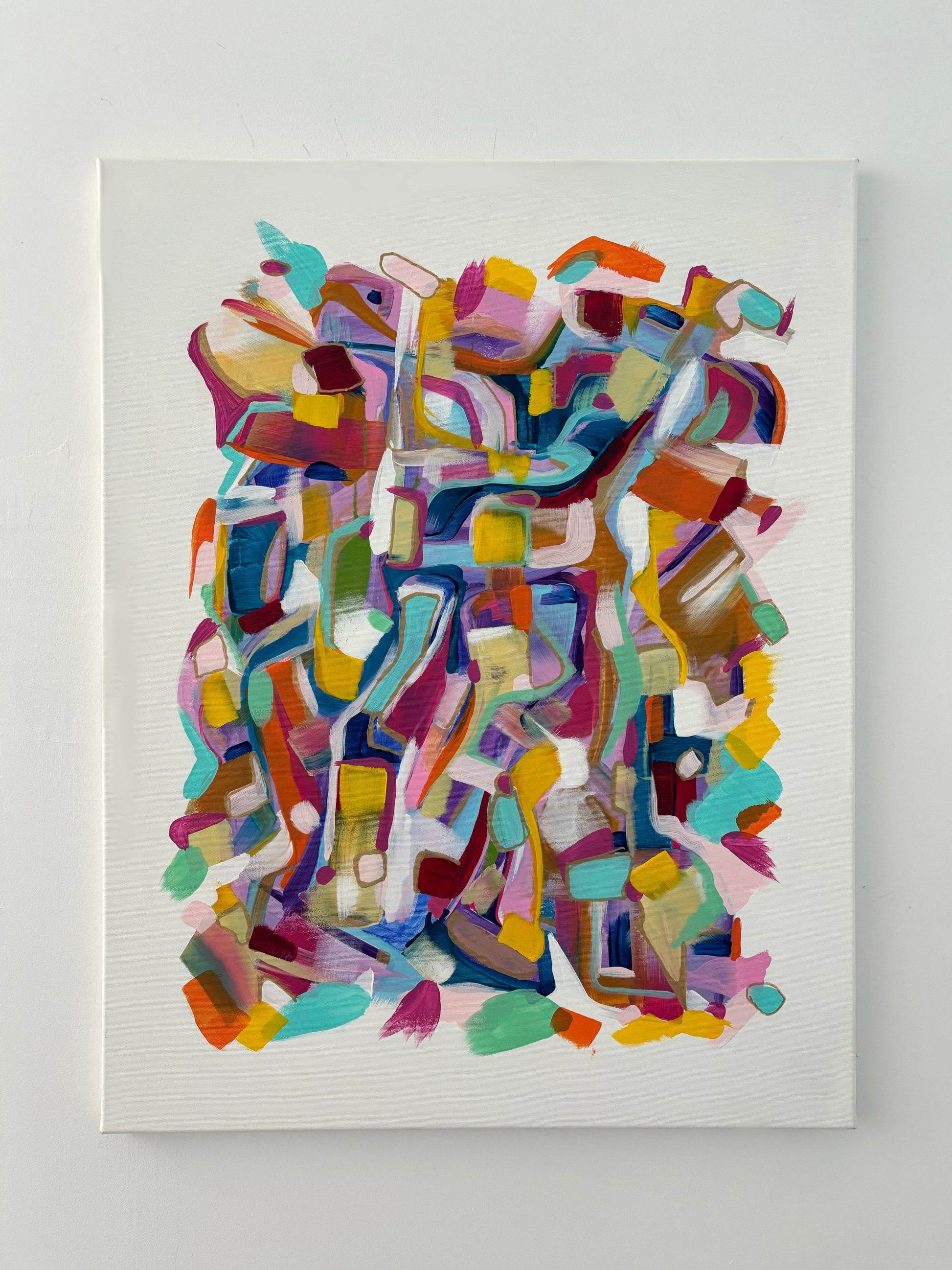 Innocent is a stunning abstract painting featuring vibrant colors and a delicate touch of gold against a white background. This piece is perfect for adding a modern and sophisticated touch to any room. This painting is a true work of art that will elevate your space.
