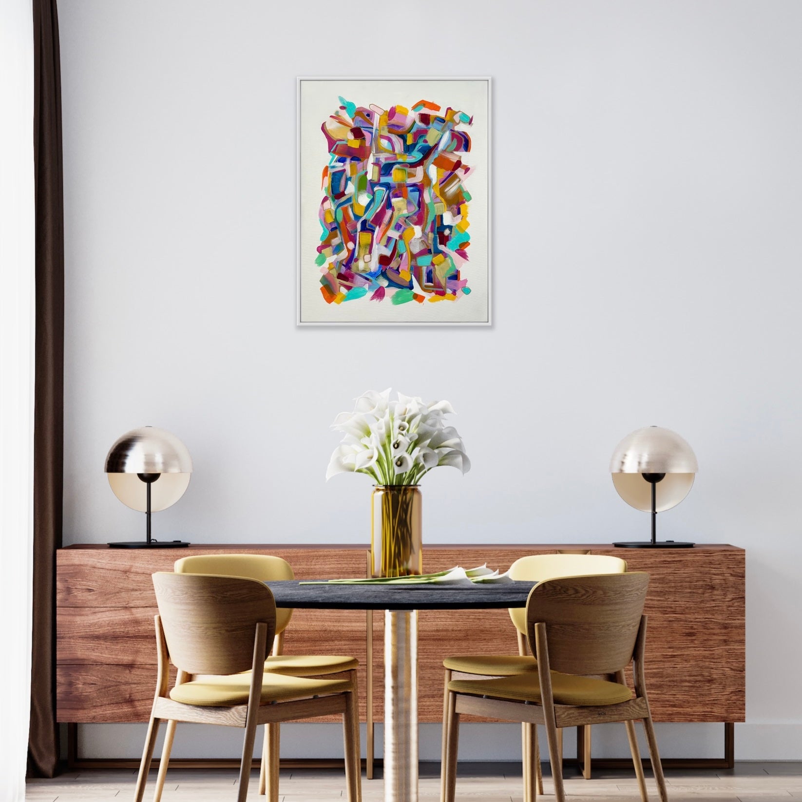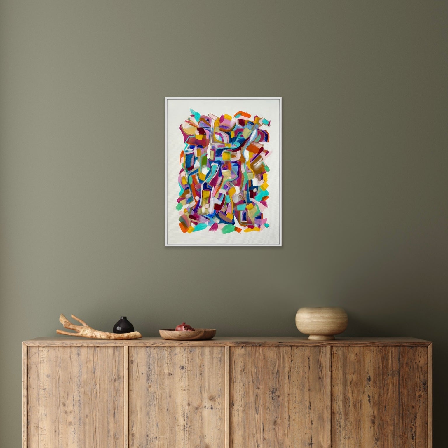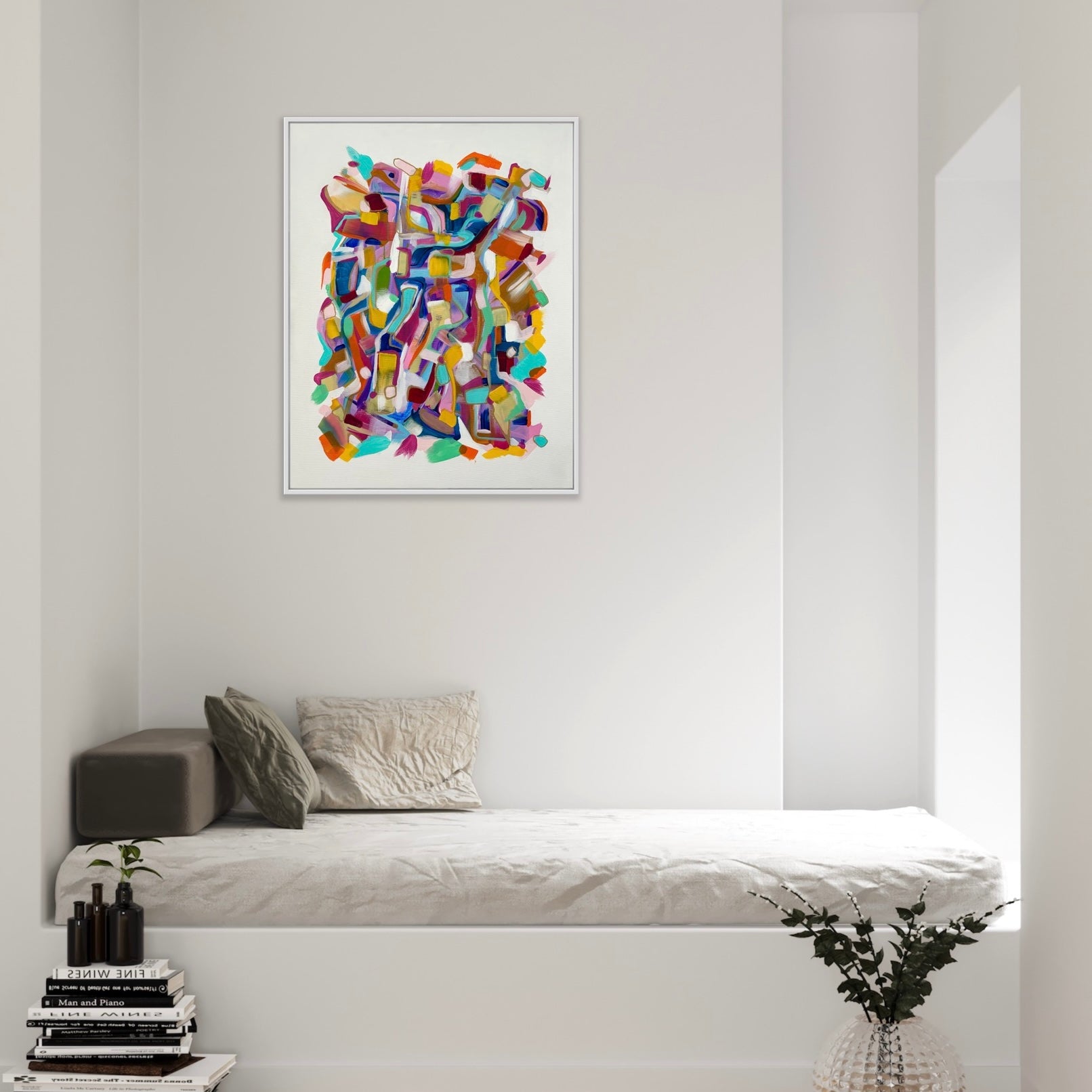 Innocent is a stunning abstract painting featuring vibrant colors and a delicate touch of gold against a white background. This piece is perfect for adding a modern and sophisticated touch to any room. This painting is a true work of art that will elevate your space.