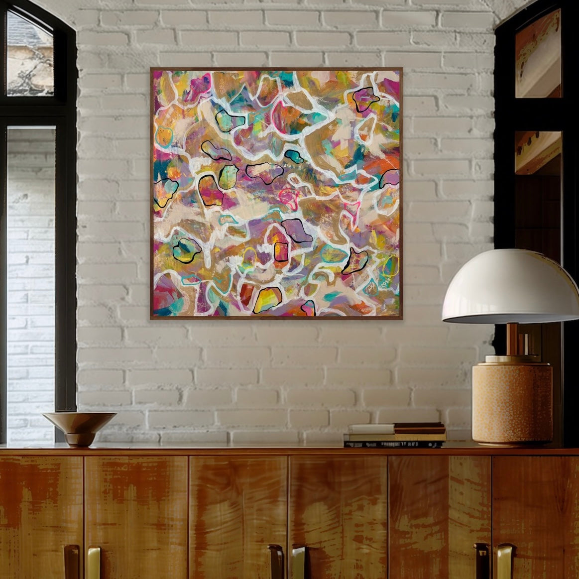 Unlock the mysteries of Windows with "Inside Windows." Experience vivid colors and abstract designs in this original painting, bringing a unique display to your home. Expertly crafted for curious minds.
