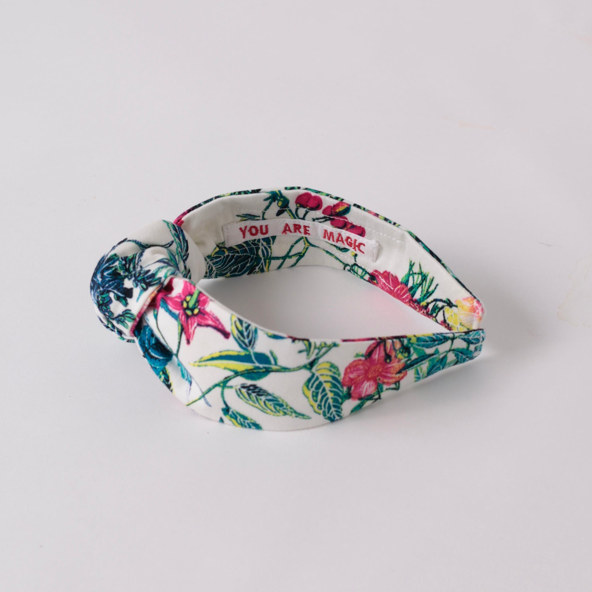 Make your day better and motivated with my White Floral Knot Headband. Gentle on delicate hair, this headband provides a comfy way to keep those locks in place and motivate your mind during the day. Inside of the headband is embroidered motivational quote “YOU ARE MAGIC”.