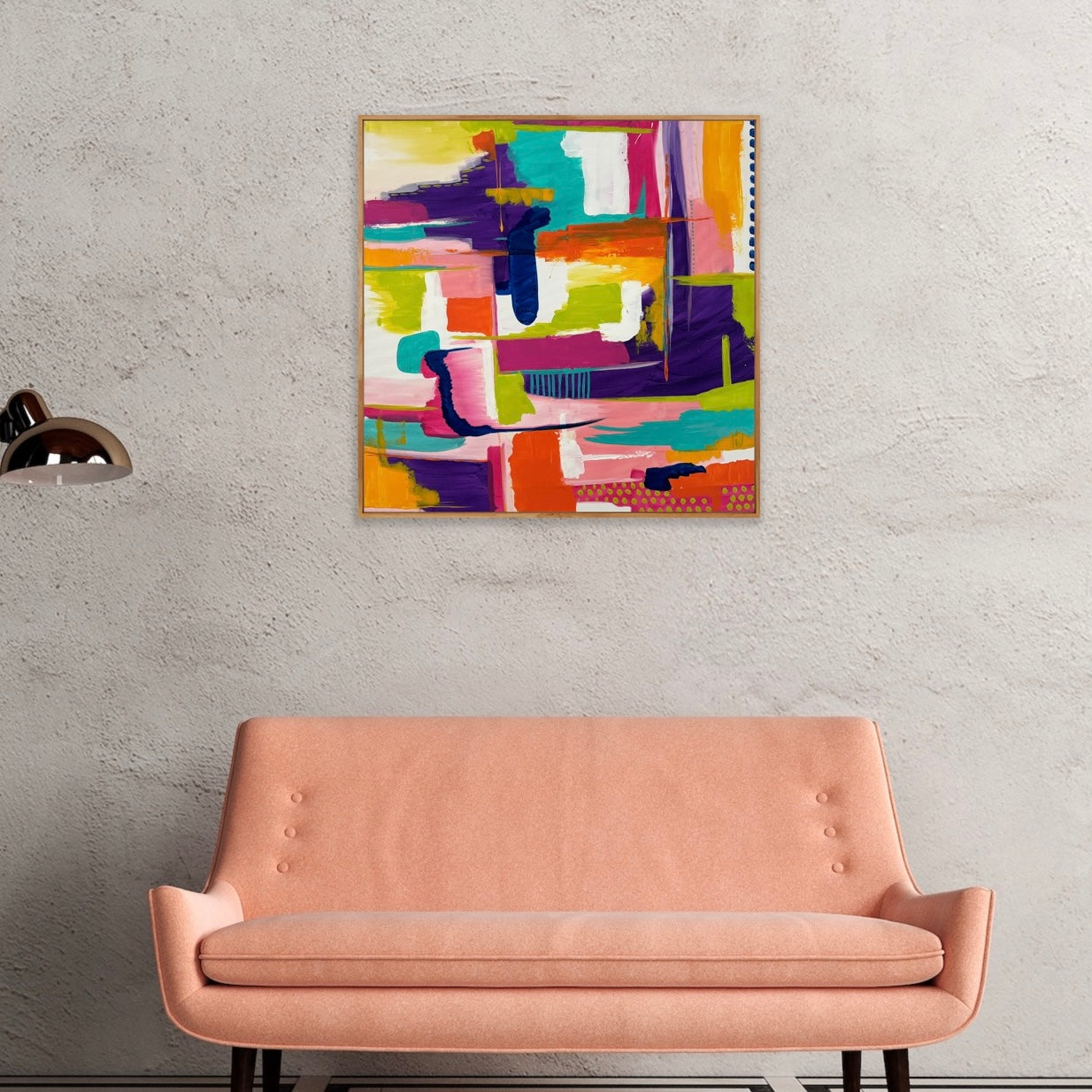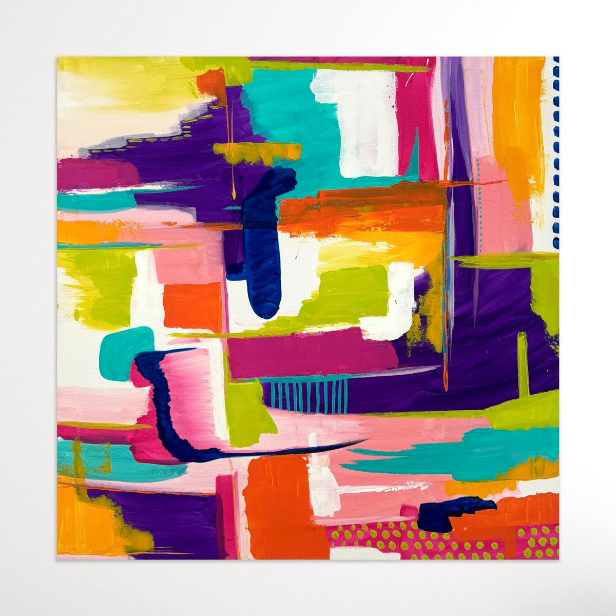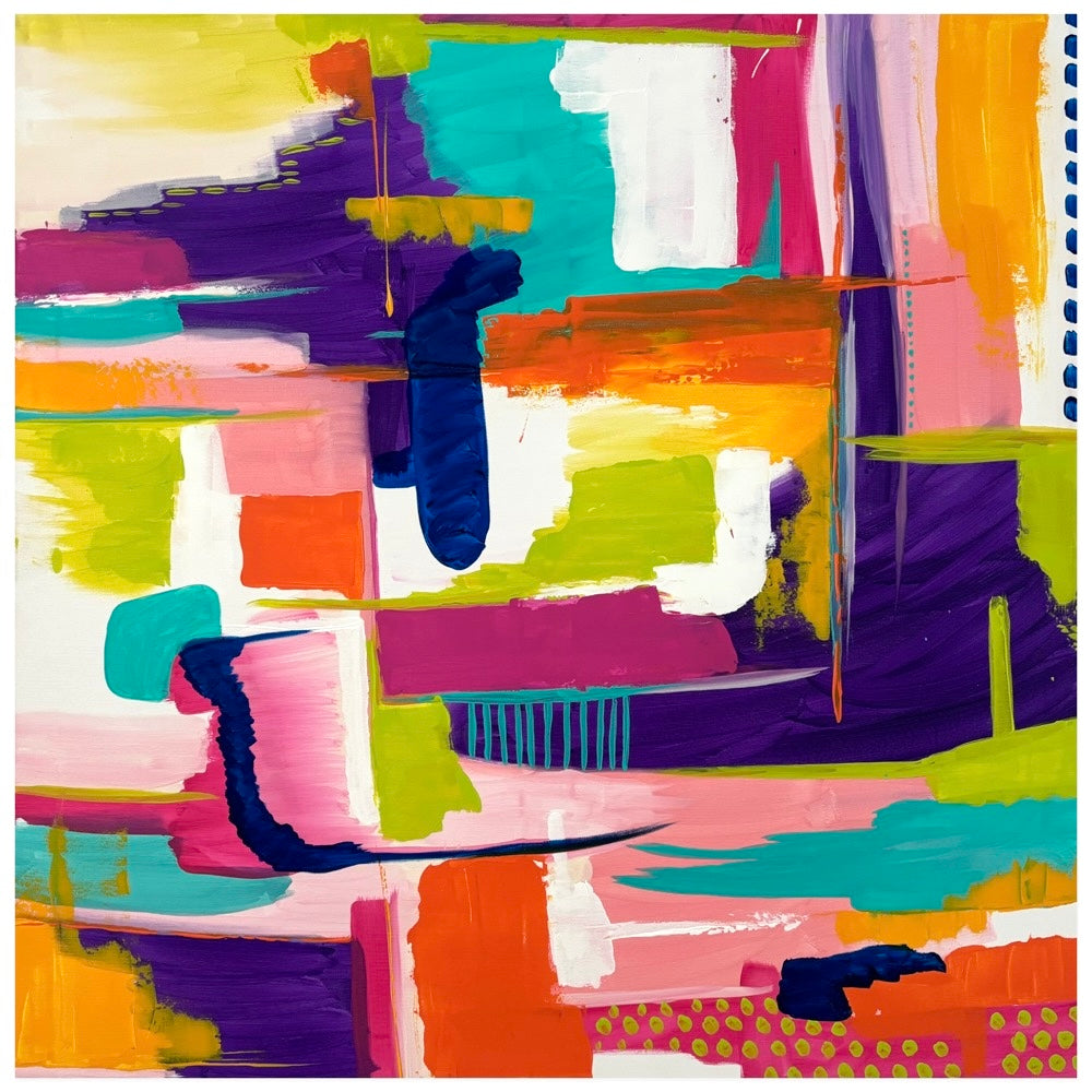 Enhance your space with Shine and Rise, an abstract painting featuring a vibrant, intricate composition. Elevate any room with this colorful and captivating piece, perfect for adding a touch of sophistication and personality. Gently crafted, this painting is sure to add a unique and dynamic element to your decor.