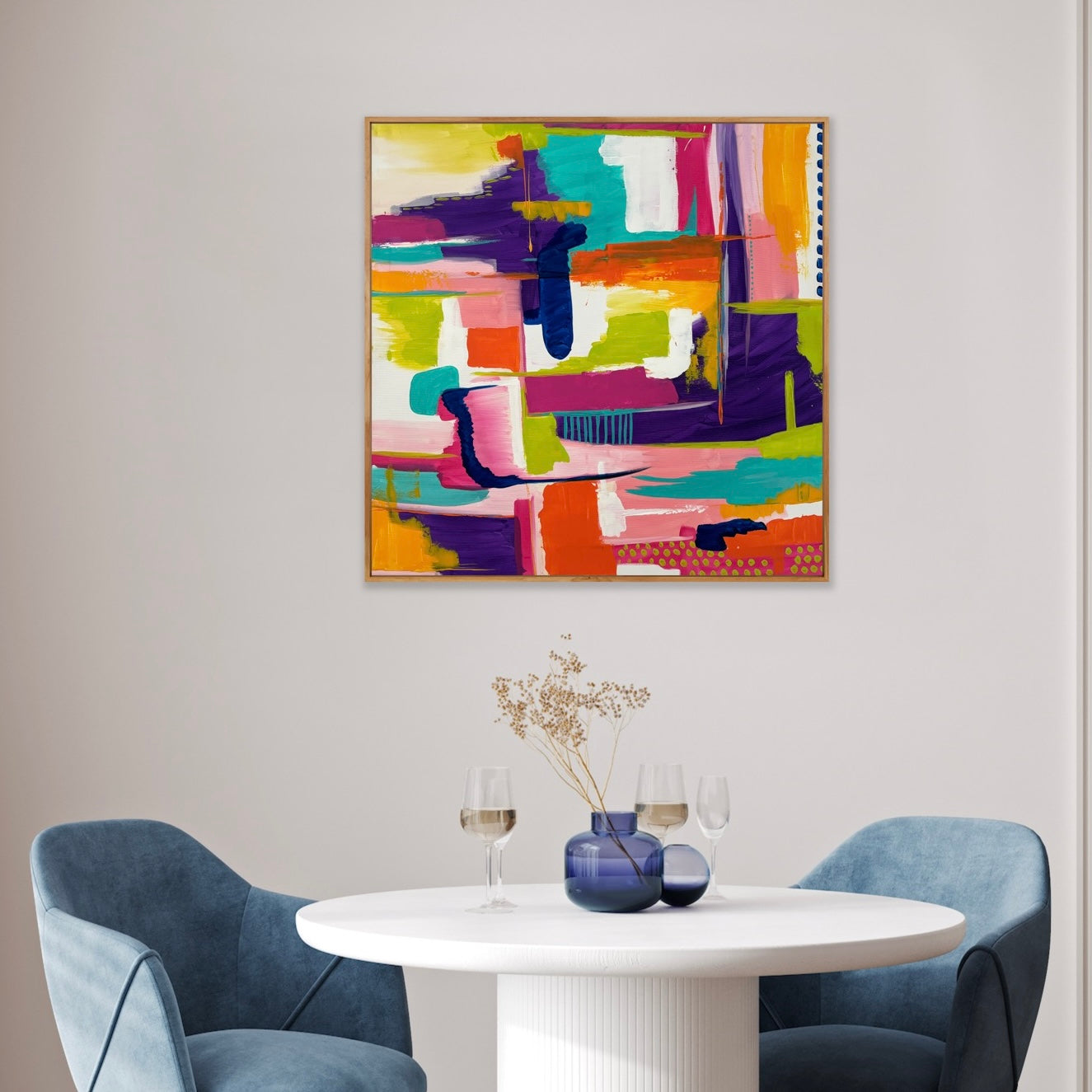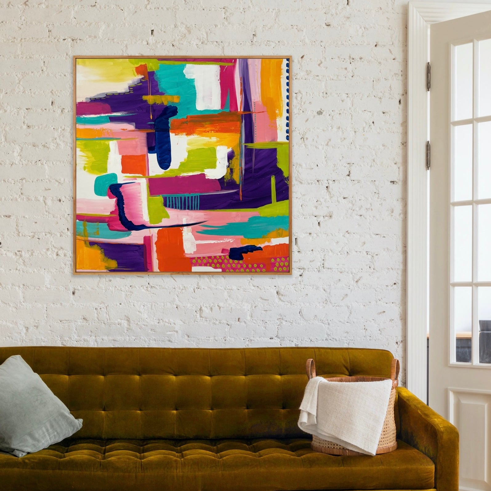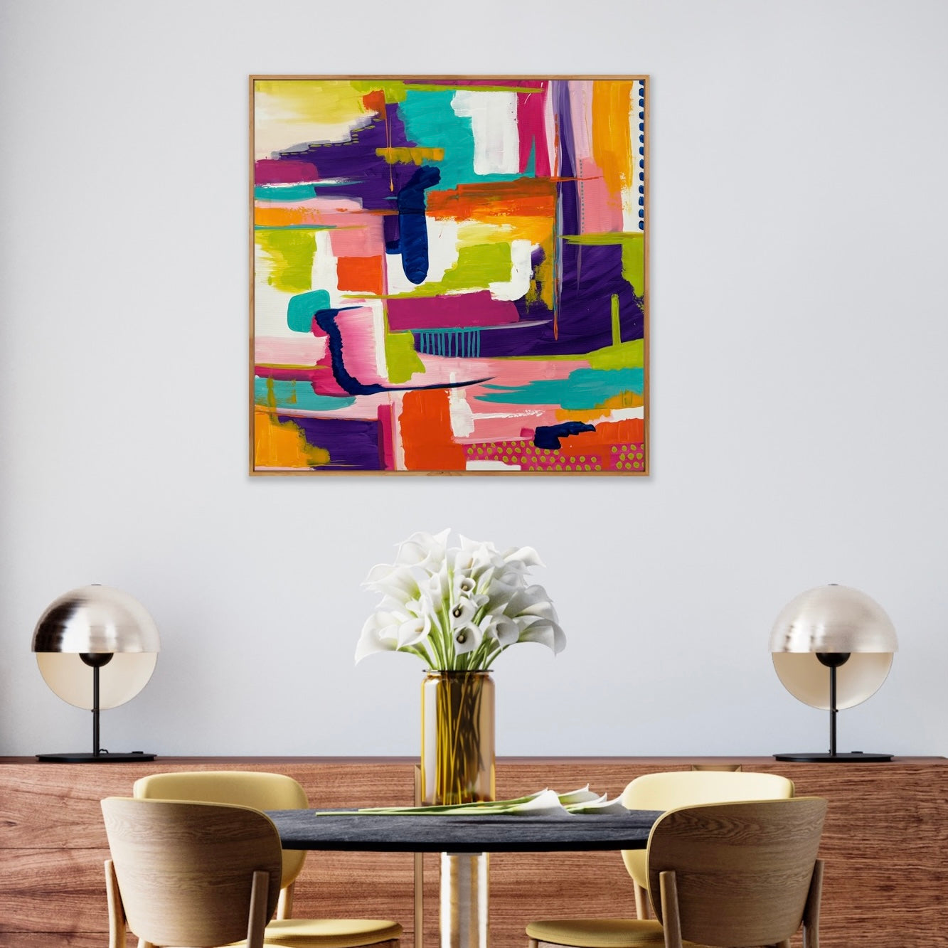 Enhance your space with Shine and Rise, an abstract painting featuring a vibrant, intricate composition. Elevate any room with this colorful and captivating piece, perfect for adding a touch of sophistication and personality. Gently crafted, this painting is sure to add a unique and dynamic element to your decor.