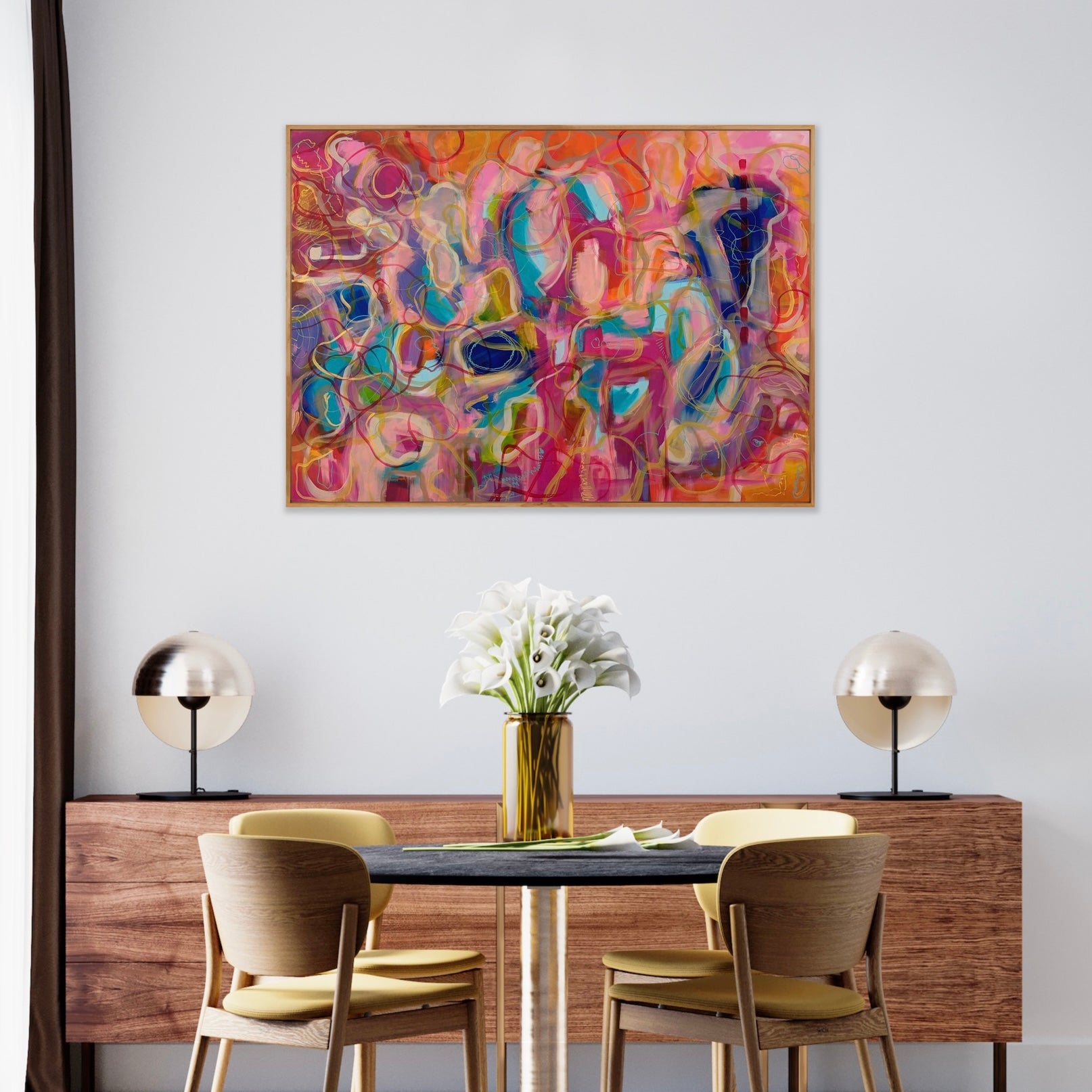 Discover the captivating world of String Theory. This abstract painting captures the essence of chaos and distills it into an explosion of vivid colors, bringing energy and refreshment into any space. Experience the beauty of order in chaos with my collection.