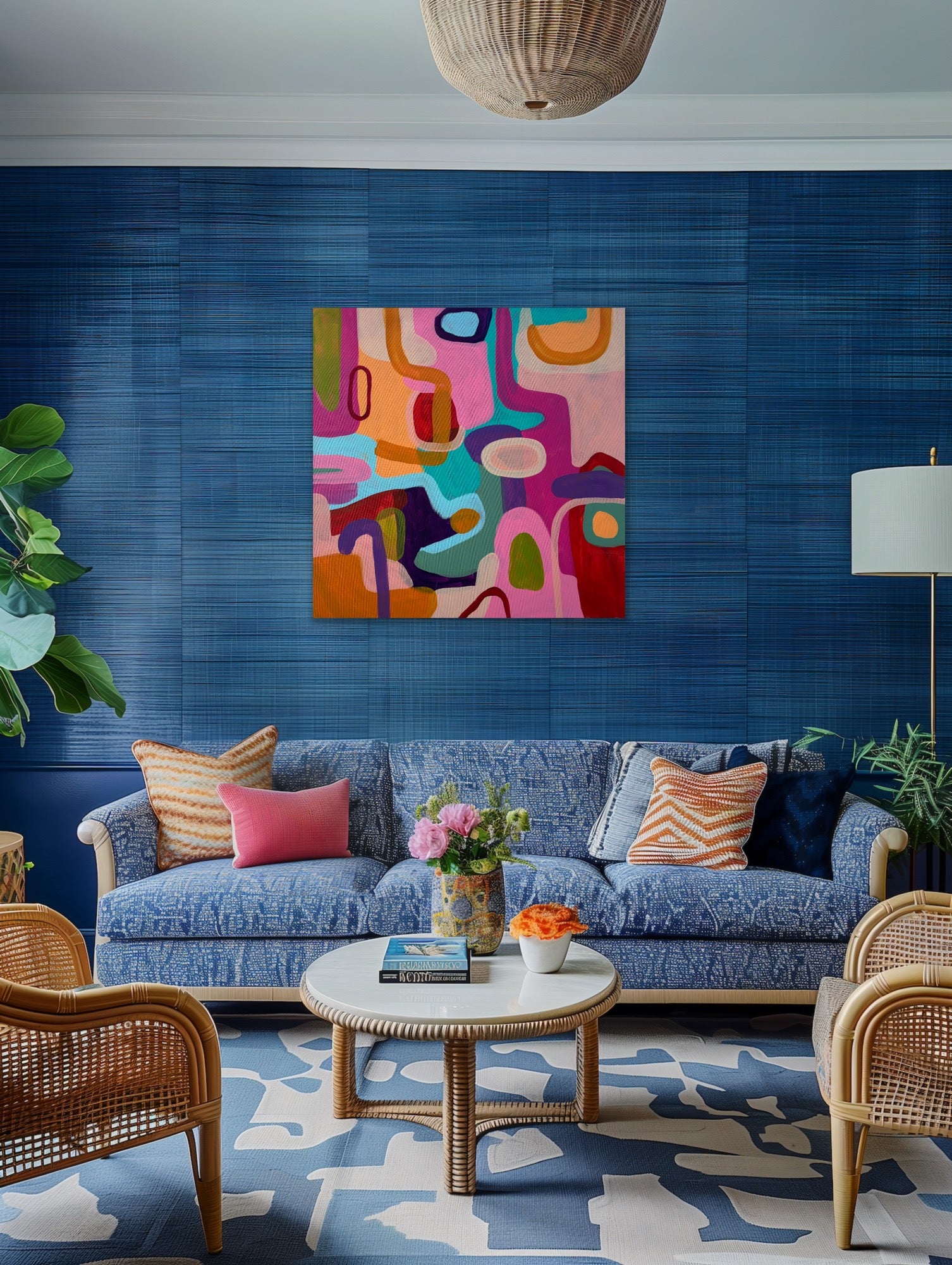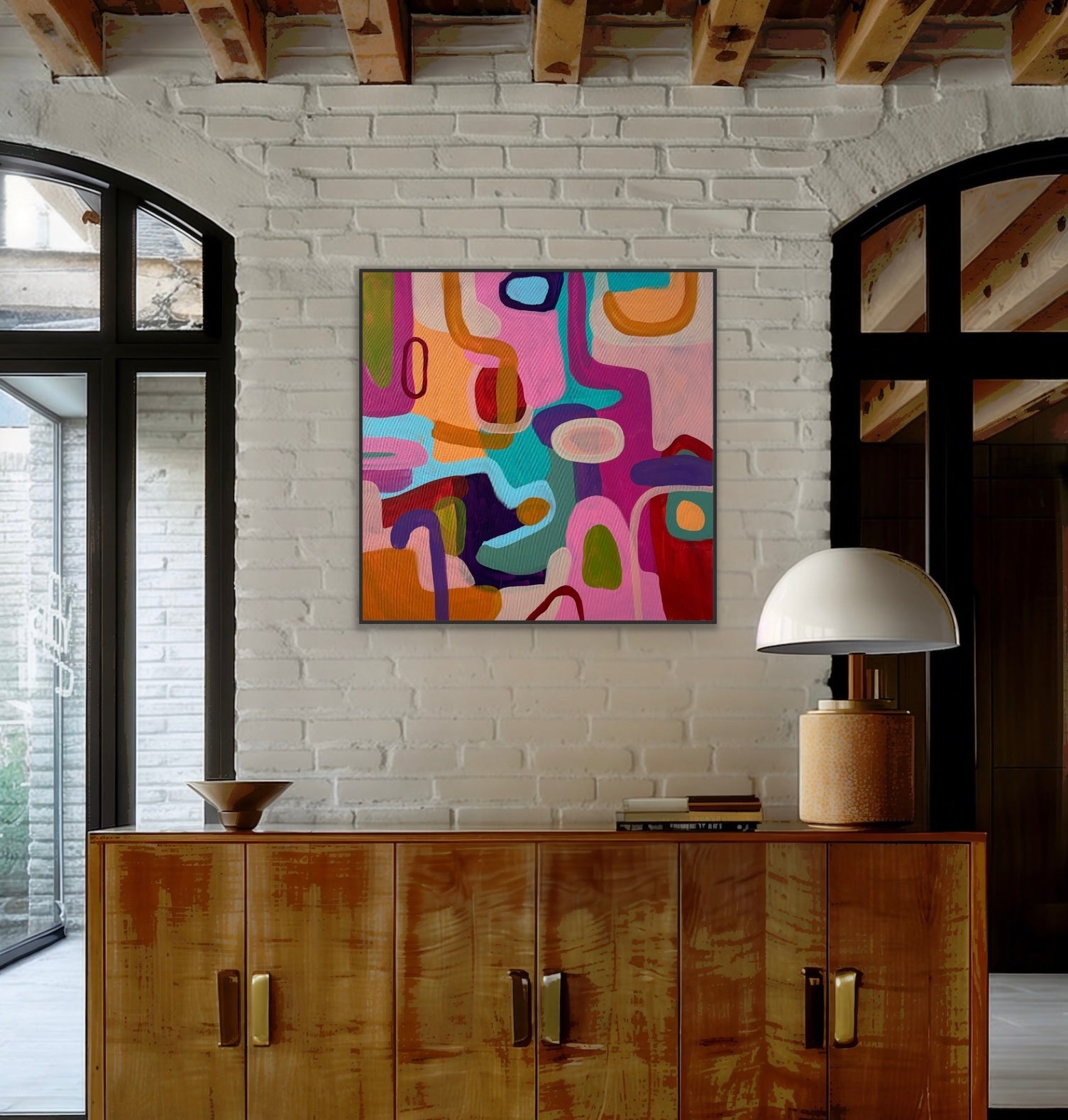 Dive into the vibrant and original world of Swimmer. This colorfull painting invites you to move with the flow and immerse yourself in the captivating vibrations.